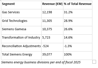Below I’ve summarized the various business segments Siemens Energy operates in: